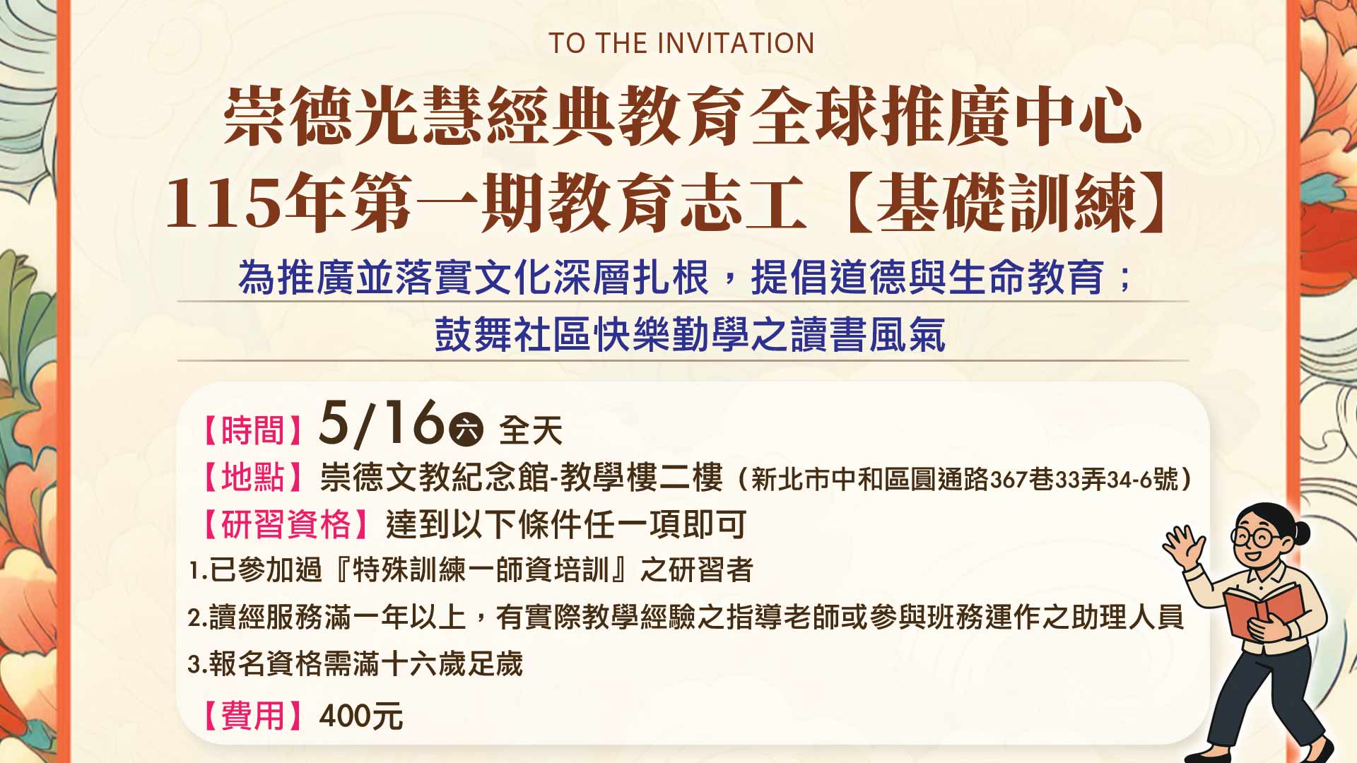 循序漸進規劃進階各種經典古籍之學習成長;為營造書香社會,培訓更多文化志工,共同推動文化扎根工作。